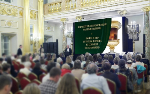 Из ее доклада собравшиеся узнали, что каталог «Война и мир в русском фарфоре» был создан на базе крупнейшей в мире частной коллекции русского императорского фарфора Елены Батуриной. Работа над академическим каталогом заняла семь лет, вовлекла более 100 специалистов, но появившееся в результате издание – более 1500 полос уникальных фото и текстовых материалов – стало прорывом в искусствоведческой науке о фарфоре. Исследование исключительных по значимости произведений от Екатерининских времен до Временного правительства позволило составить настоящую энциклопедию императорского фарфора России, найти и включить в каталог более 1200 графических источников, 800 архивных свидетельств, более 300 имен заказчиков и первых владельцев, а порядка 50 проектов форм и оригинальных эскизов росписи публикуются впервые.